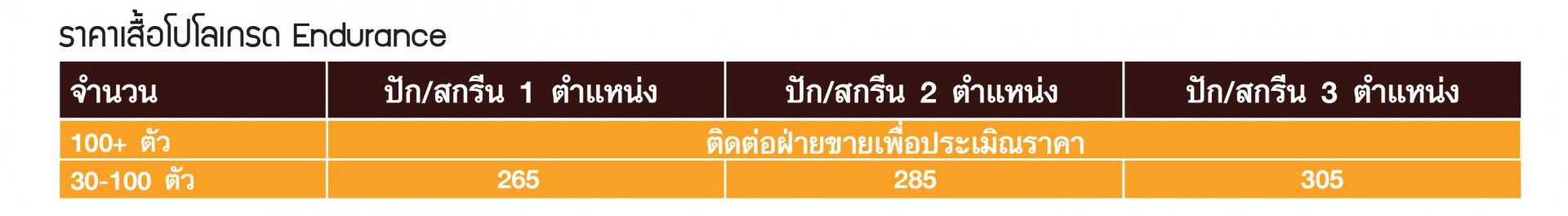 เสื้อโปโล Endurance พัฒนาขึ้นให้เหมาะสำหรับทำยูนิฟอร์ม ผลิตด้วย (Polyester 100%) ด้วยการทอแบบพิเศษ nano technology