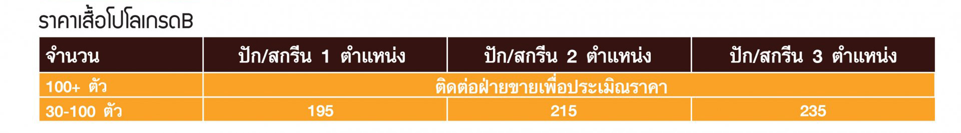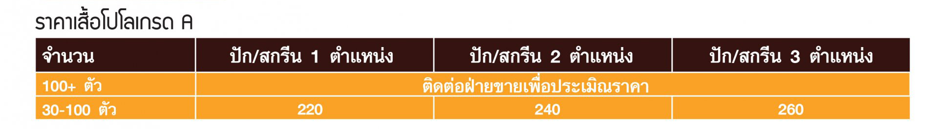 ไม่ว่าคุณกำลังมองหาสั่งทำเสื้อโปโลลุคคลาสสิกหรือลุคที่ทันสมัยและล้ำยุค สามารถเลือกสี โลโก้ และรายละเอียดอื่นๆ